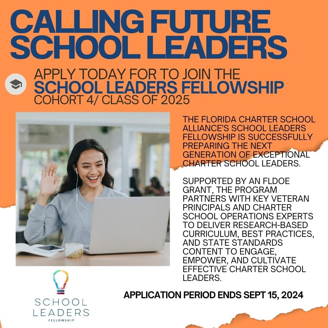 August 10, 2024 — The Florida Charter School Alliance’s School Leaders Fellowship (SLF) is successfully preparing the next generation of exceptional charter school leaders. In just three years, three cohorts (comprised of forty participants) have graduated from the program and many Fellows are already leading a Florida charter school. The application period for Cohort 4/Class of 2024 opens on August 10, 2024. The deadline to apply is September 15, 2024.