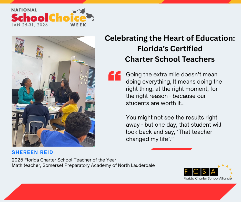 TALLAHASSEE, FL — In celebration of National School Choice Week 2026 (January 25-31, 2026), the Florida Charter School Alliance (FCSA) proudly recognizes Florida’s position as a national leader in parental choice, offering families a wide range of high-quality K–12 public education options designed to meet the diverse needs of all learners.