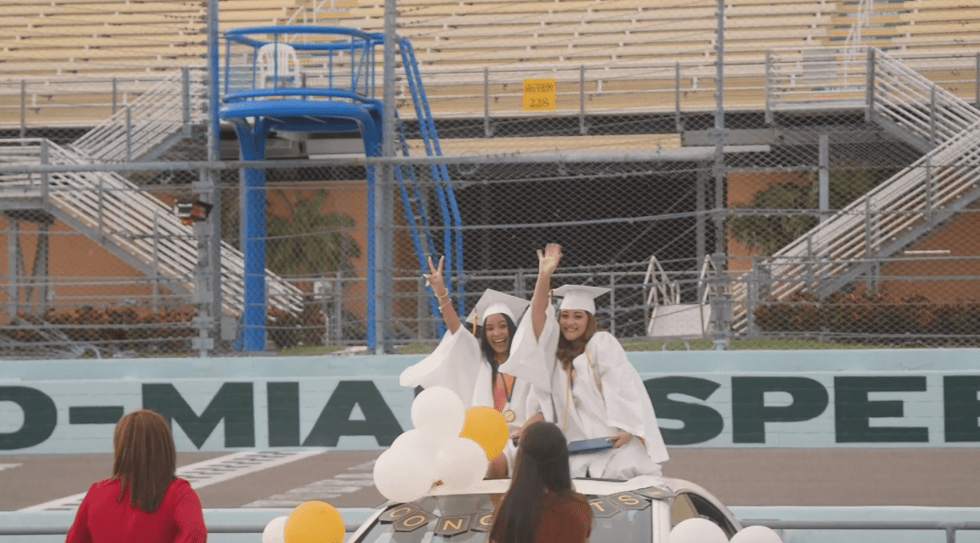 Homestead, FL — Palm Glades Preparatory Academy seniors held their Class of 2020  graduation ceremony at the famed Homestead-Miami Speedway, in Homestead on June 22, 2020.